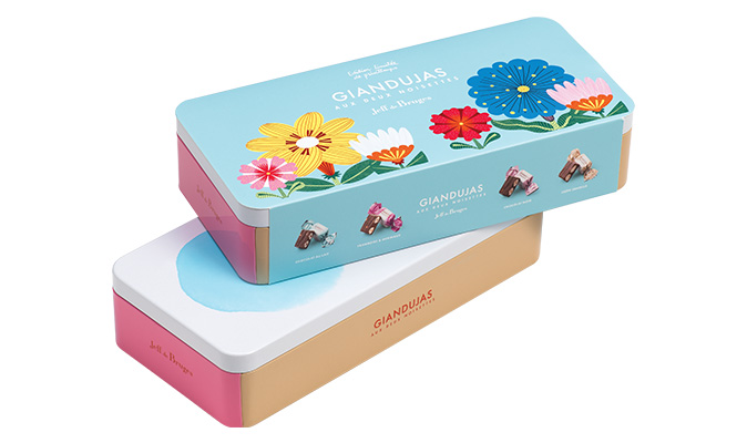 Imaginez notre fameux praliné gianduja dans lequel sont plongées 2 noisettes entières caramélisées. L’alliance exquise du croquant et du fondant ! Ces giandujas aux 2 noisettes sont présentés dans une ravissante boite en métal.
